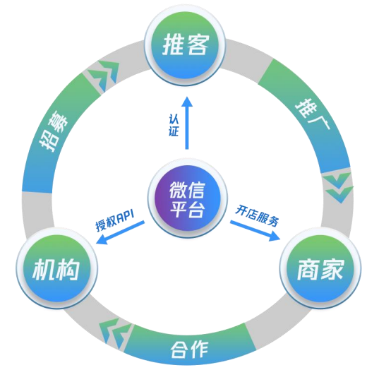微信小店推广联盟带货机构“腾商惠家”:基于“推客”功能自研系统,进一步强化“内容+电商+流量”的融合,实现推客er的多级裂变分佣及团队长功能,让商家和个人创造滚雪球式的持续收益。